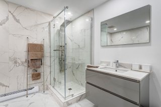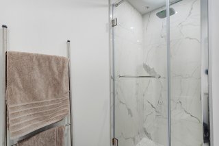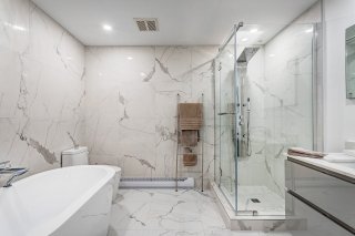 The bedrooms are both generously sized and offer plenty of natural light. The master bedroom has a walk-in closet and a spa-like ensuite bathroom with a double vanity and a walk-in shower. The second bedroom is on the other side of the apartment and is perfect to have guests, or family.