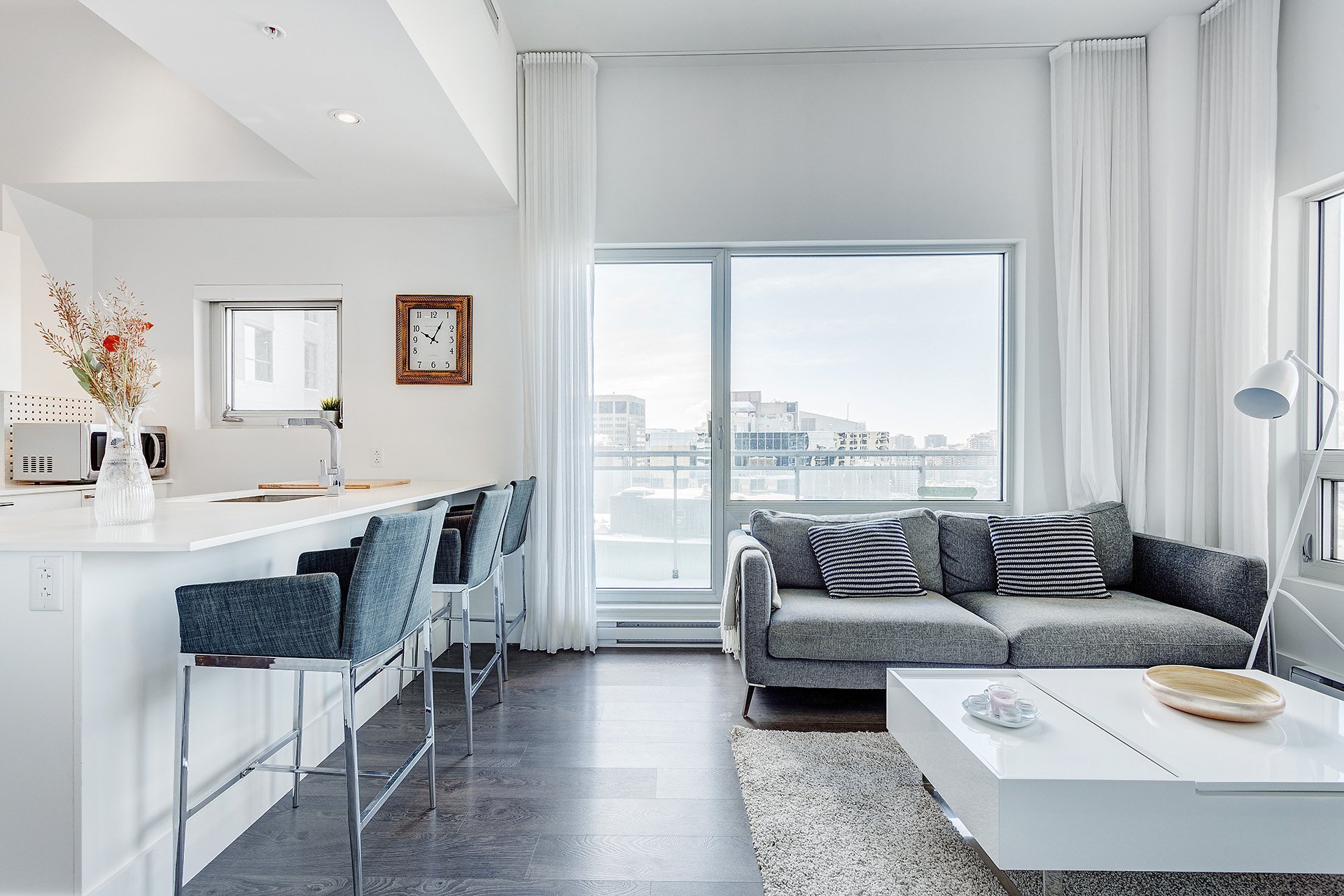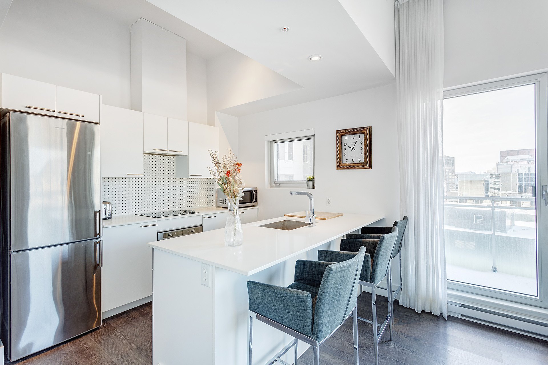 This 1 bedroom condo is very well located in the heart of downtown Montreal in a prestigious tower. It offers all the comforts and is ideal for a single person or a couple.