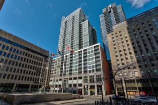 Exceptional one-bedroom condo with a rare cross-through layout, offering a spacious private terrace as well as a separate balcony. Located in the prestigious Altitude complex, in the very heart of downtown, just steps from Place Ville Marie. Prime location within walking distance of McGill, Bonaventure, and Square-Victoria metro stations, as well as McGill University, UQAM, Concordia, and ÉTS. Only one block from Sainte-Catherine Street and directly connected to one of the many entrances to Montréal's underground city.