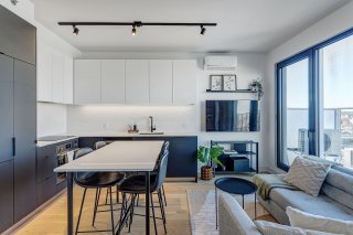 Open-Concept Living Space: The living area is spacious and filled with natural light, thanks to expansive windows that frame the incredible views. The design is sleek, modern, and minimalist, featuring neutral tones and high-end finishes. Hardwood floors or polished concrete complement the airy feel of the space.